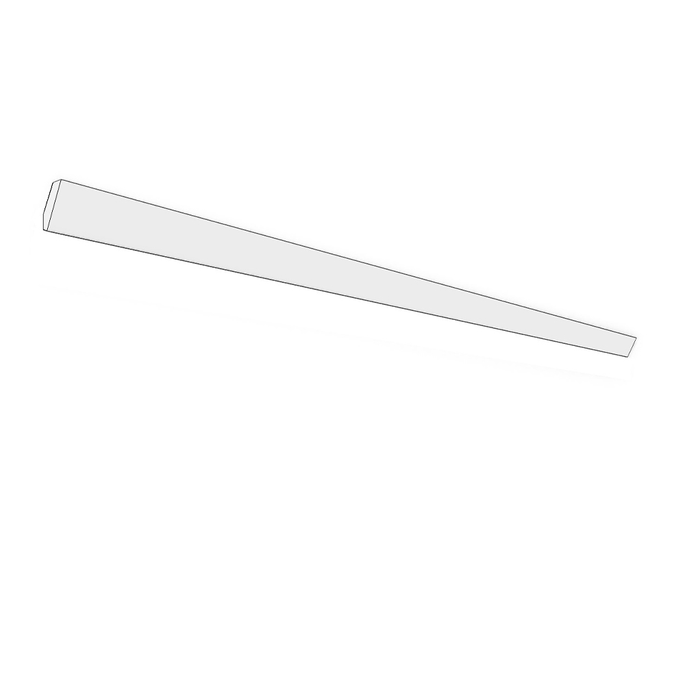 Angled crown moulding. 3 1/4″ wide, 5/8″ thick, 95 1/2″ long. places on wall 3″ high, 1 1/2″ deep. Finished on front and bottom.
