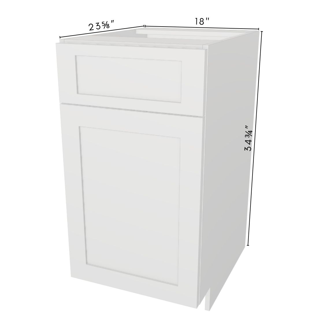 Dimensions: Fixed Width 18″ | Height 34¾″ H | Case depth 23⅝″ | Toe kick 3¾″ high