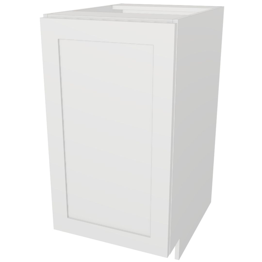 Premium fully assembled full-height single-door base cabinet constructed entirely from durable 5/8″ UV2-finished plywood for outstanding moisture resistance, strength and a beautiful long-lasting finish. Cabinet boxes are built using strong dado joints, glue and pins for rock-solid ready-to-install construction.