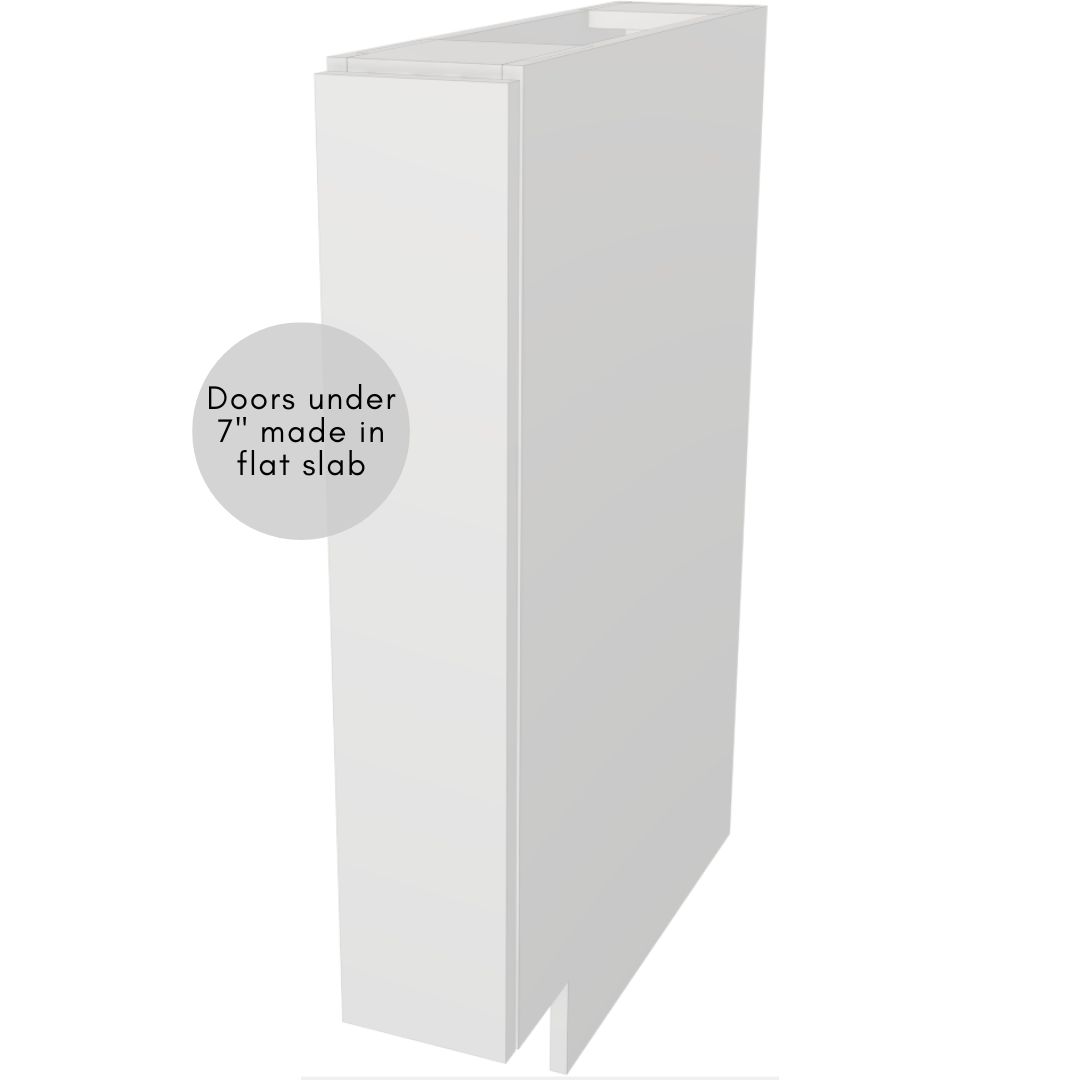 Dimensions: Custom-sized width 5″ – 24″ in ⅛″ increments | Height 34¾″ | Case depth 23⅝″ | Toe kick 3¾″ high
