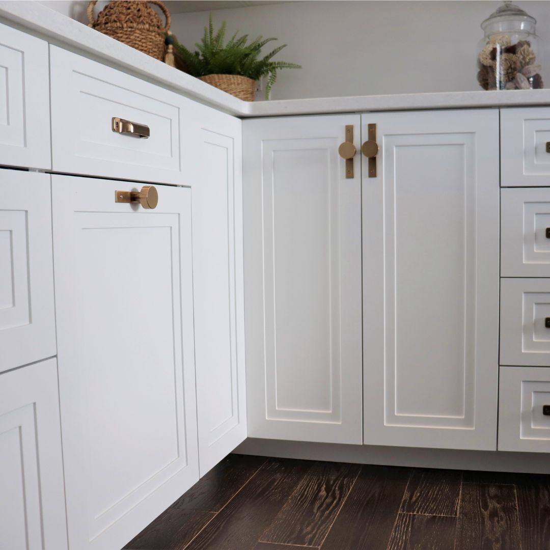 Features a bi-fold door set fitted with concealed European-style 6-way adjustable soft-close hinges for smooth, silent operation and full corner access. The cabinet body forms a true 90° corner with equal return sides that run back to the wall, 23⅝″ deep on each side.