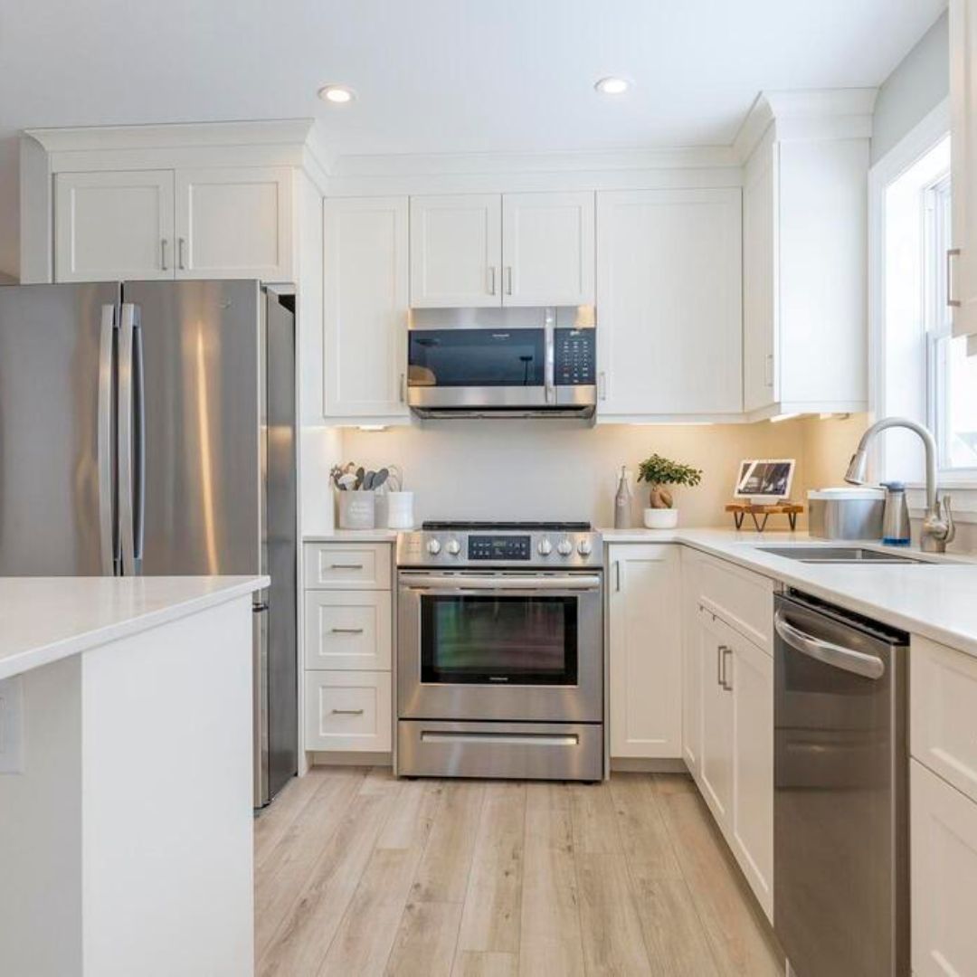 Dimensions: Custom-sized in ⅛″ increments (both left and right returns change equally) width and depth 33-36” | Height 34¾″ | 23⅝″ Deep ends | Toe kick 3¾″ high