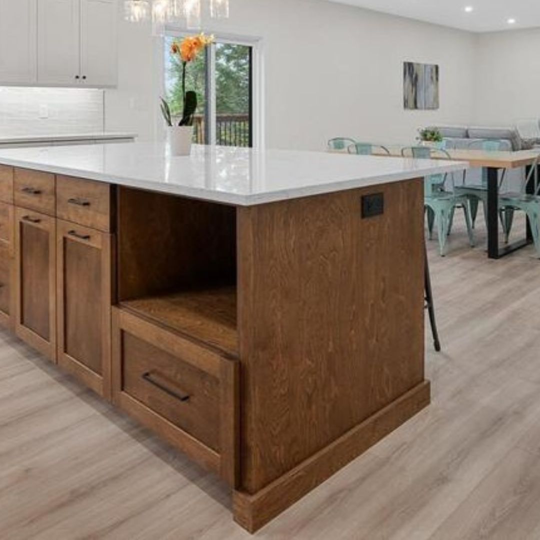 Premium base-end panel constructed from 5/8″ UV2-finished plywood. One full side is fully finished; the opposite side is finished with a 4″ perimeter return. Matching edge banding is applied to one long edge.