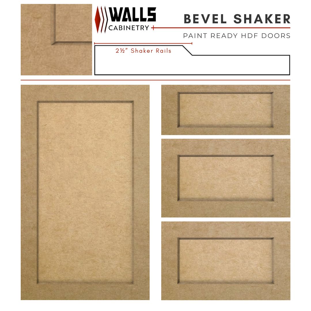 The Bevel Shaker door features a gentle 45° bevel on the inner frame and a clean square outer frame for subtle elegance and depth. Machined from a single piece of premium 3/4″ thick HDF with a 1/4″ recessed center. Stiles and rails available in 2½”, 2¼”, or 2″ widths. Fully customizable sizes from 6″ to 36″ wide and 6″ to 95″ high in 1/16″ increments. Precision CNC-crafted and paint-ready.