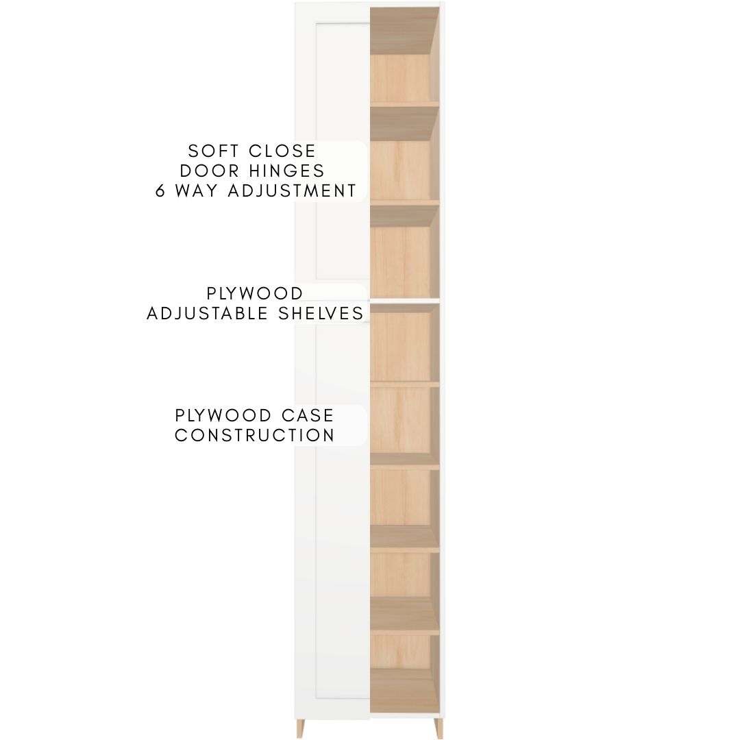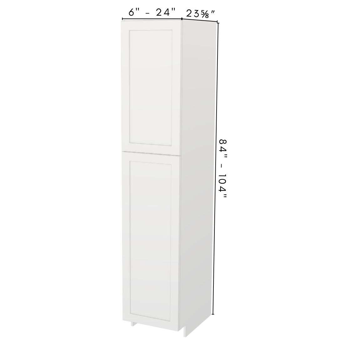 Premium fully assembled full-height tower cabinet with two independent single-door sections, constructed entirely from durable 5/8″ UV2-finished plywood for outstanding moisture resistance, strength and a beautiful long-lasting finish. Cabinet boxes are built using strong dado joints, glue and pins for rock-solid ready-to-install construction.