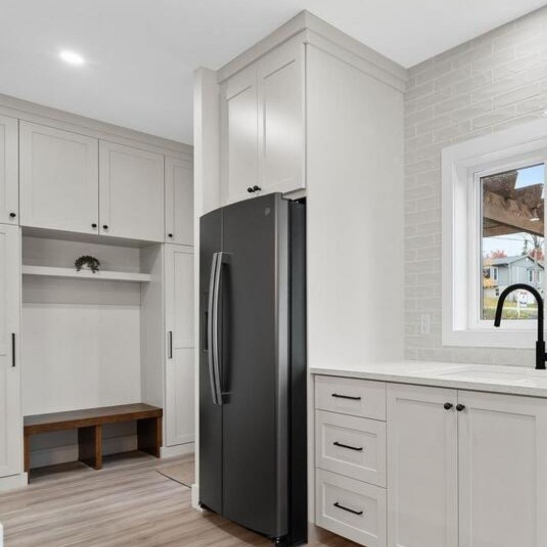 All exposed edges finished with matching edge banding for a clean seamless look. Designed to align perfectly over refrigerators and tall pantry cabinets