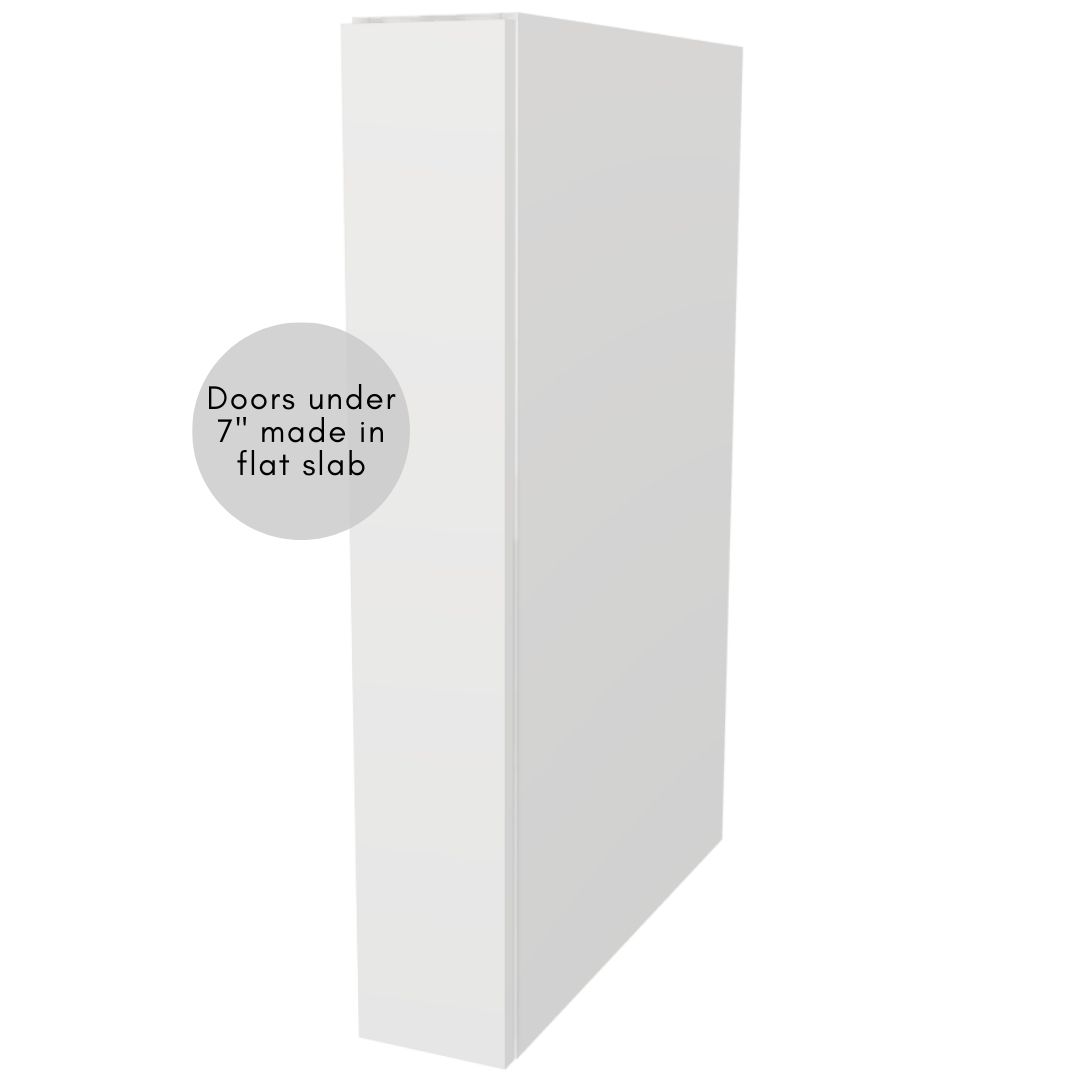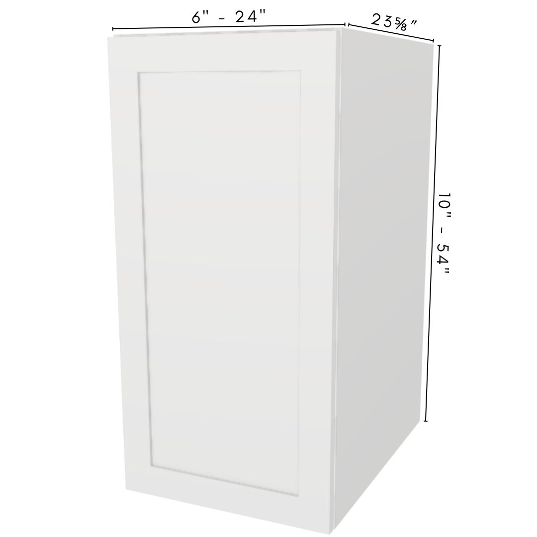 Fully assembled extra-deep single-door wall cabinet (23⅝″ + doors) with soft-close hinges, adjustable shelves. Custom 6″ – 22″ W, 10″ – 54″ H, fixed 23⅝″ D.