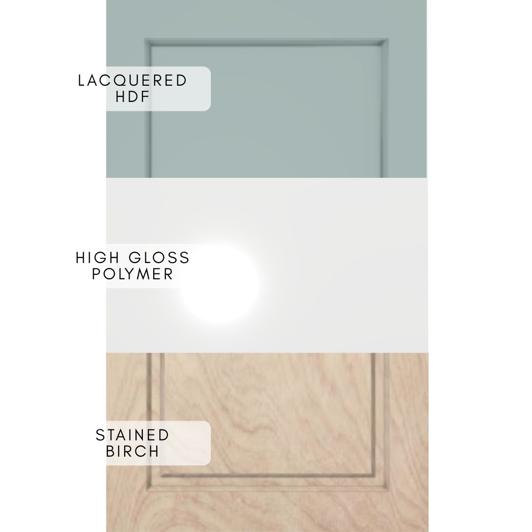 Interior includes full depth adjustable 5/8″ UV2 plywood shelves with shelf pins. Number of adjustable shelves varies by cabinet height: